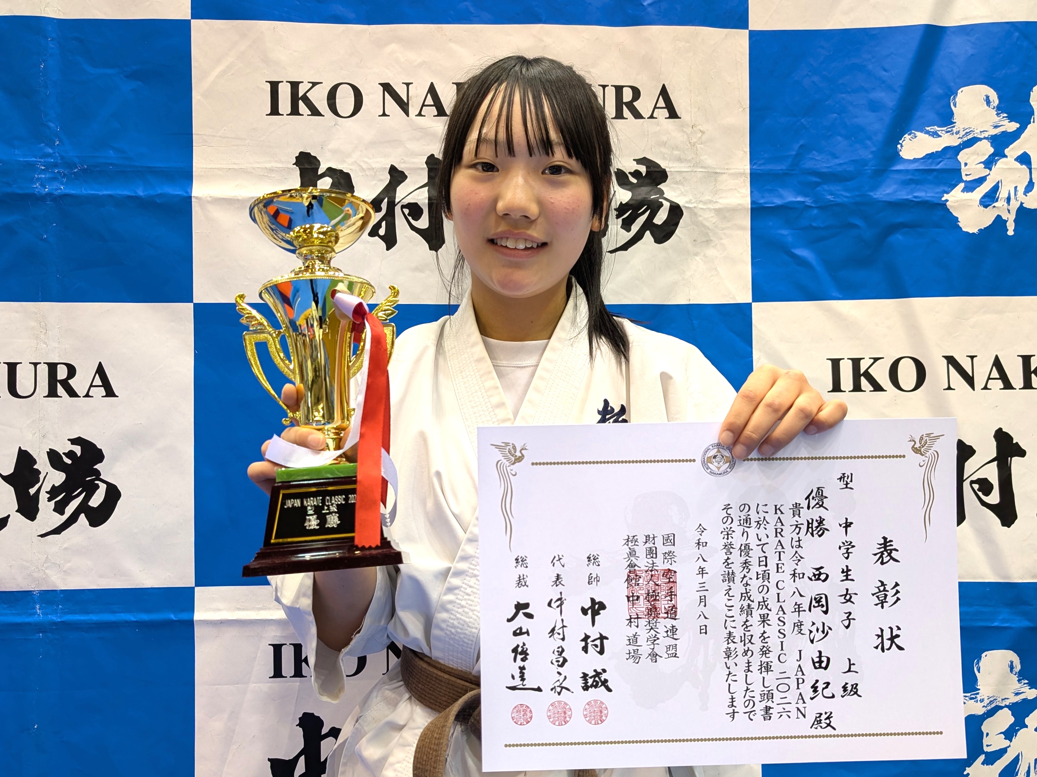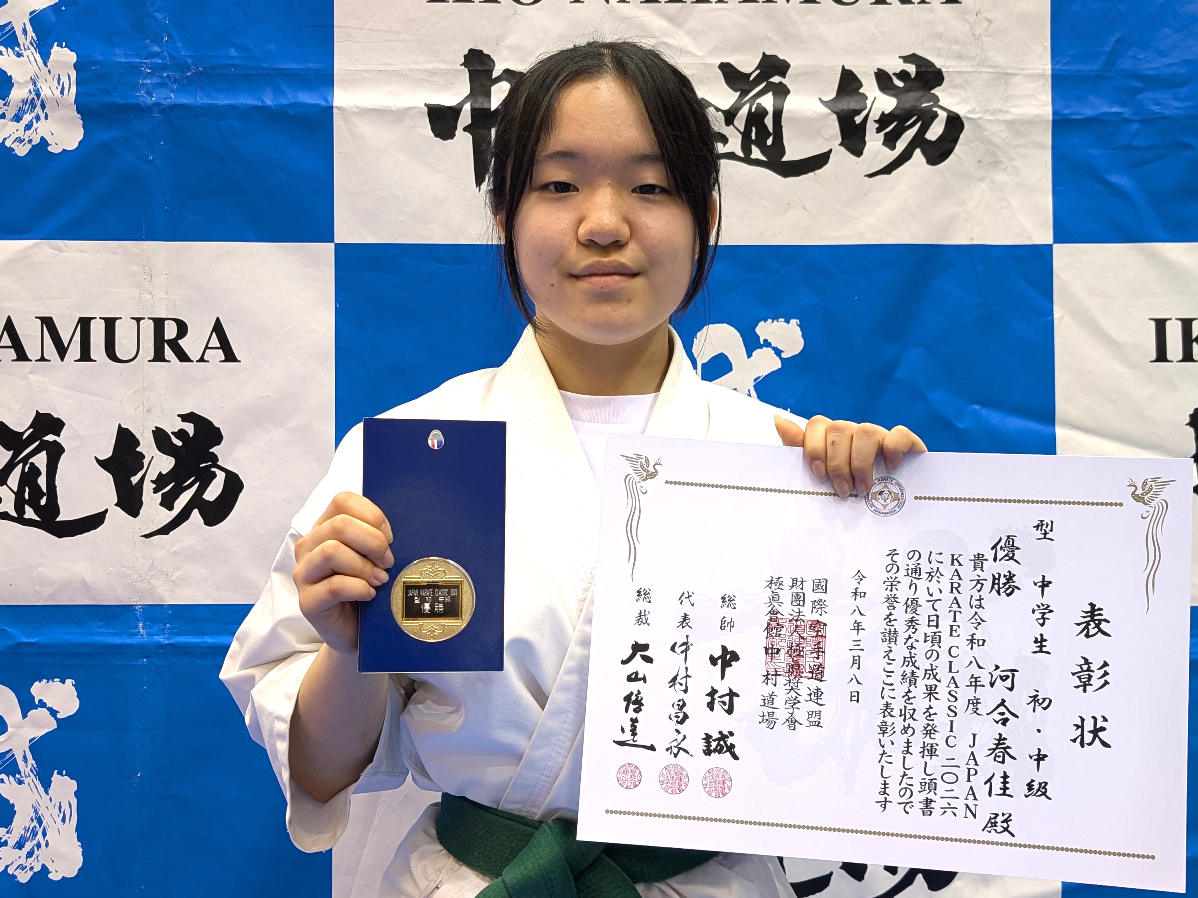 型 中学生(初・中級) 優勝 河合春佳(阪神中央支部) 演武型 撃砕小 型 中学生女子(上級) 優勝 西岡沙由紀(阪神中央支部) 演武型 五十四歩 型 中学生男子(上級) 優勝 西村駿佑(阪神中央支部) 演武型 撃砕小