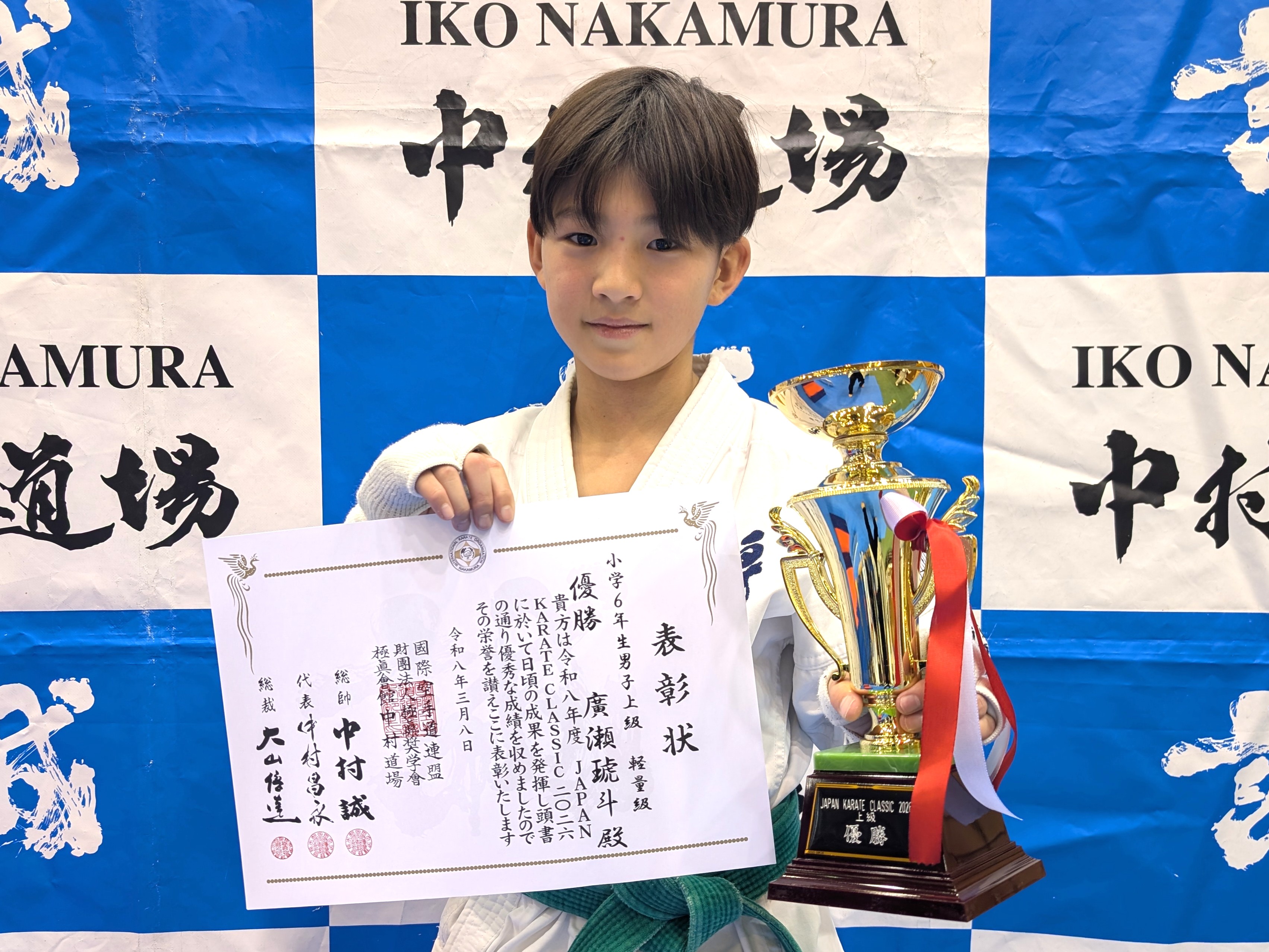 小学6年生(初級) 優勝 大仲晃輝(和泉支部) 小学6年生(中級)軽量級 優勝 古田優真(神戸中央支部) 小学6年生(中級)重量級 優勝 蓑田力斗(尼崎支部) 小学6年生男子(上級)軽量級 優勝 廣瀬琥斗(白蓮会館堺支部) 小学6年生男子(上級)重量級 優勝 天良八雲(前田道場)
