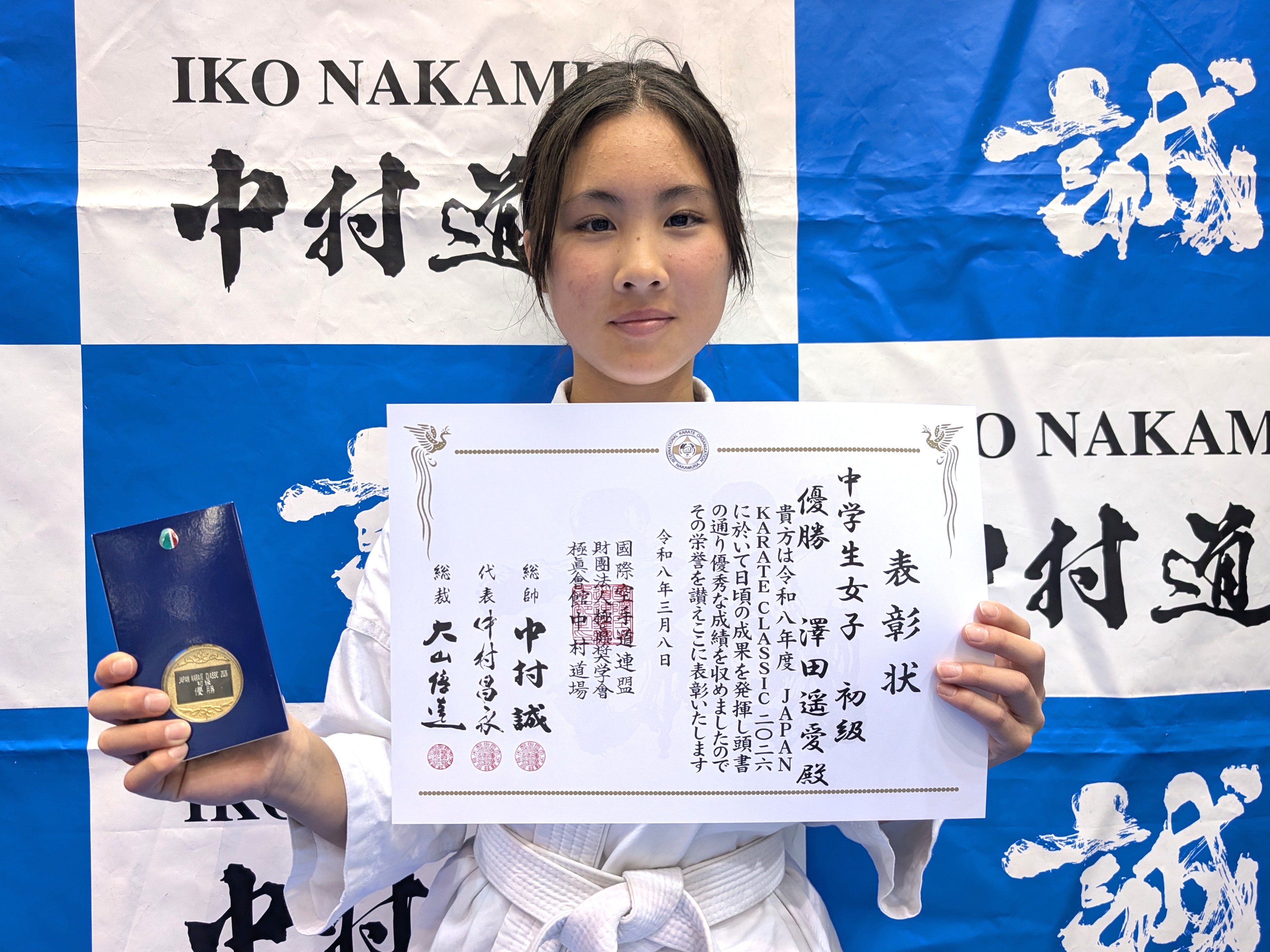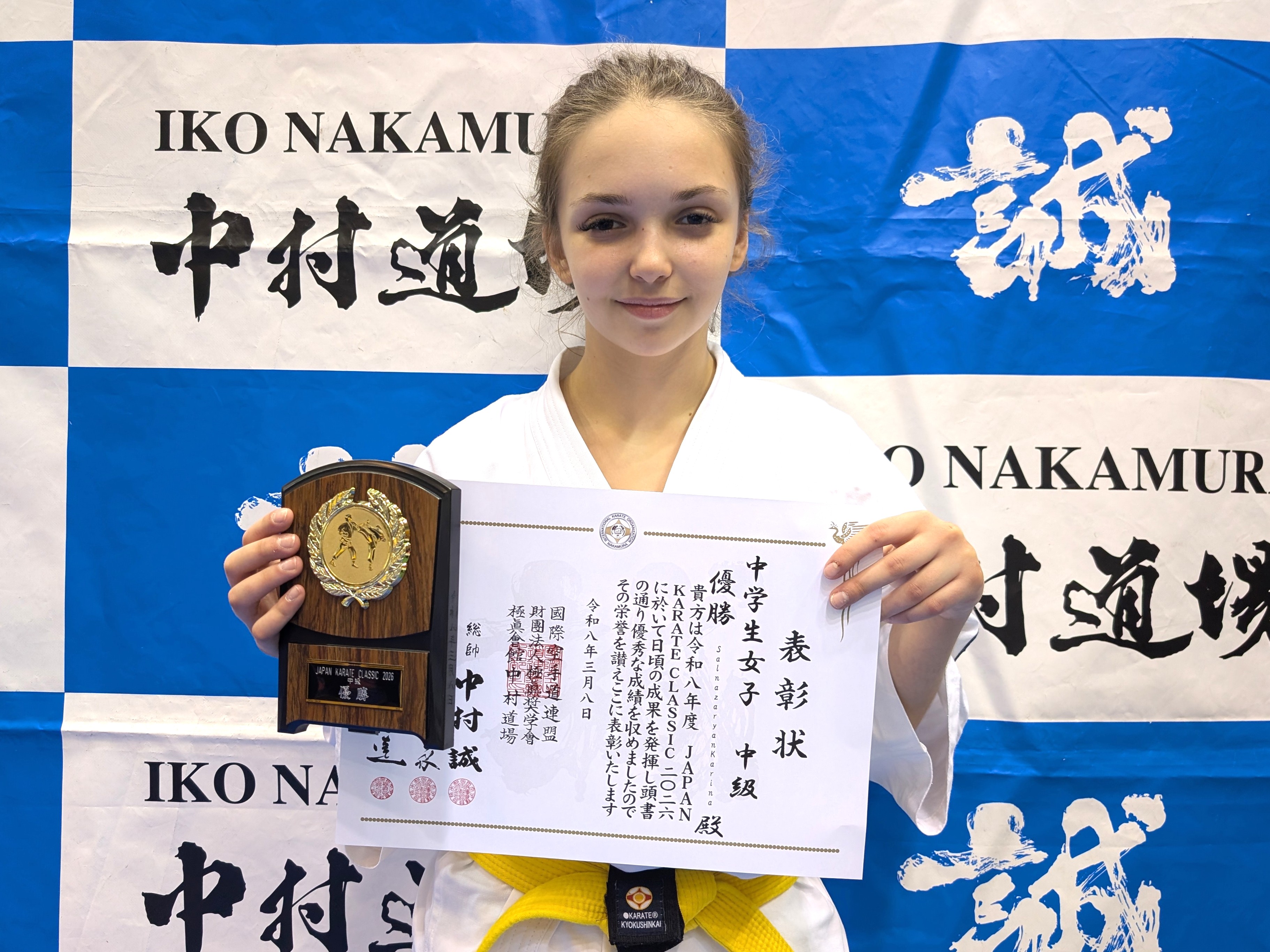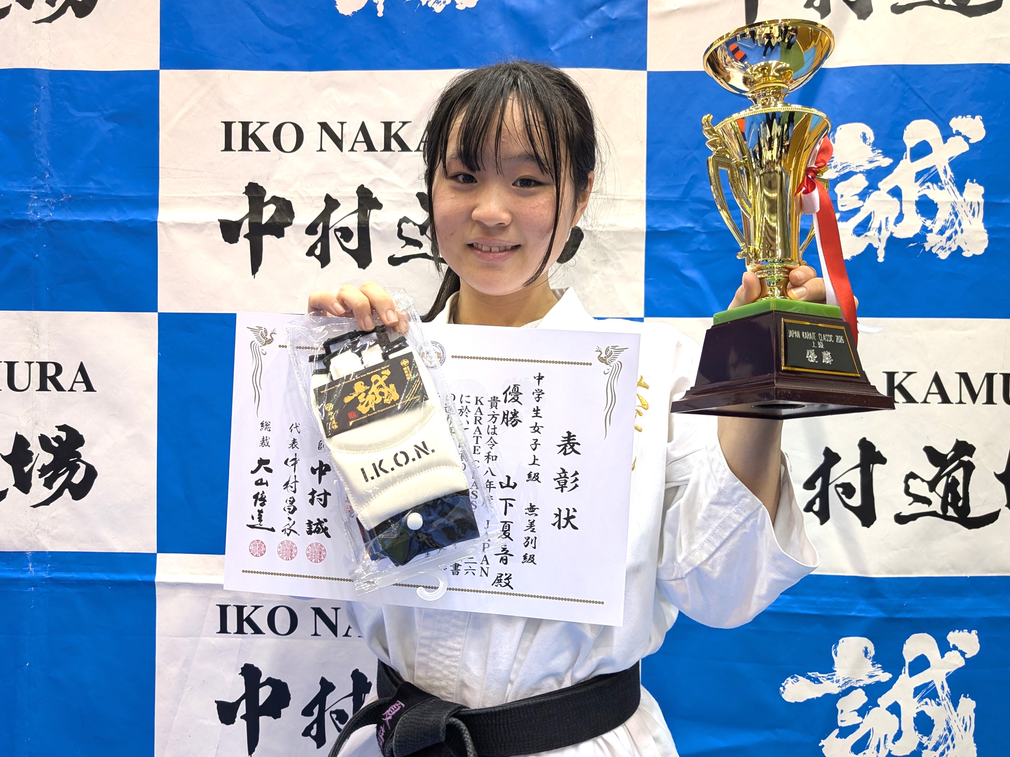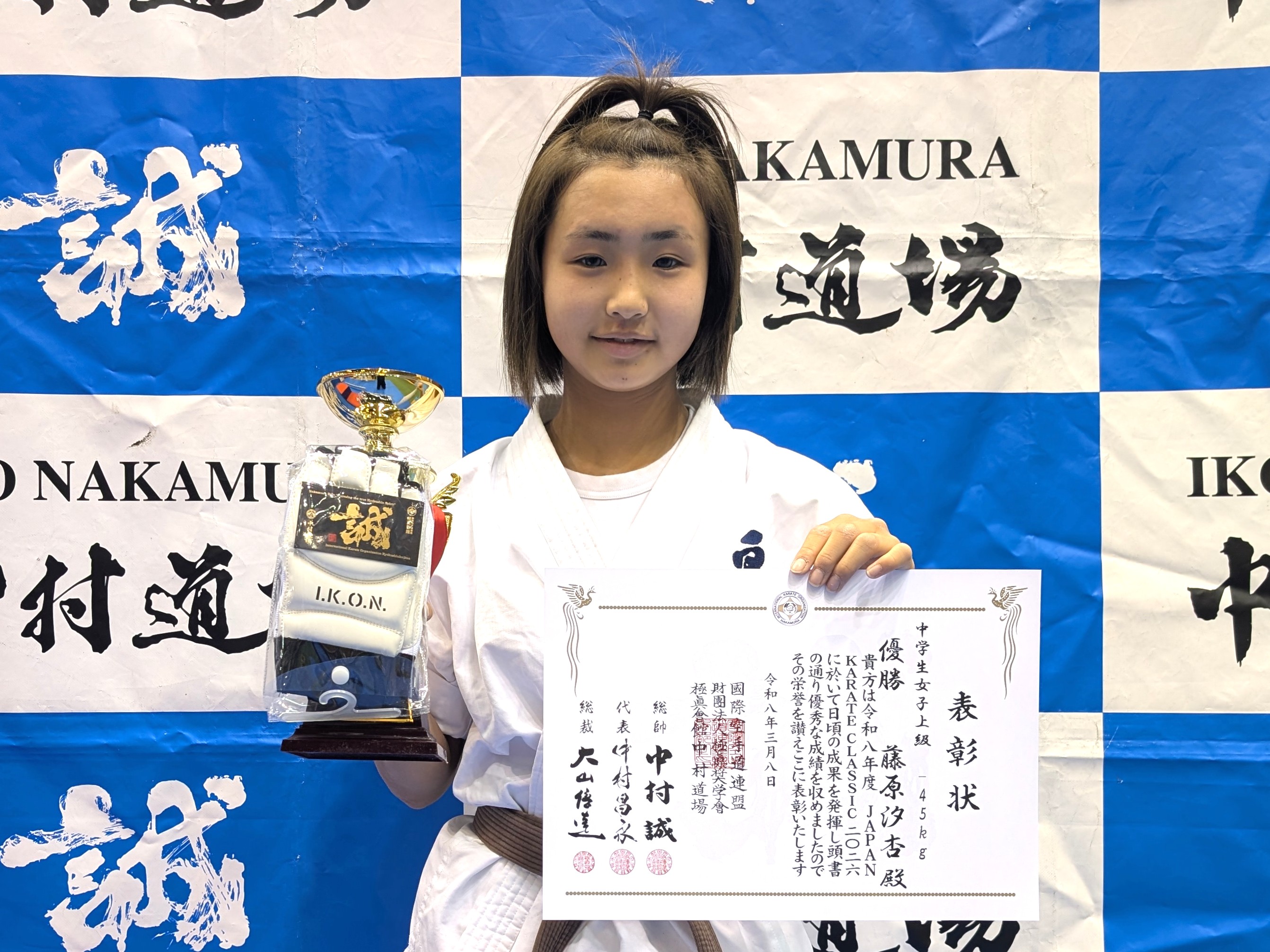 中学生女子(初級) 優勝 澤田遥愛(兵庫西支部) 中学生女子(中級) 優勝 Salnazaryan Karina(KWFロシア) 中学生女子(上級)-45kg 優勝 藤原汐杏(白蓮会館東大阪北支部) 中学生女子(上級)無差別級 優勝 山下夏音(IBKA大谷道場)