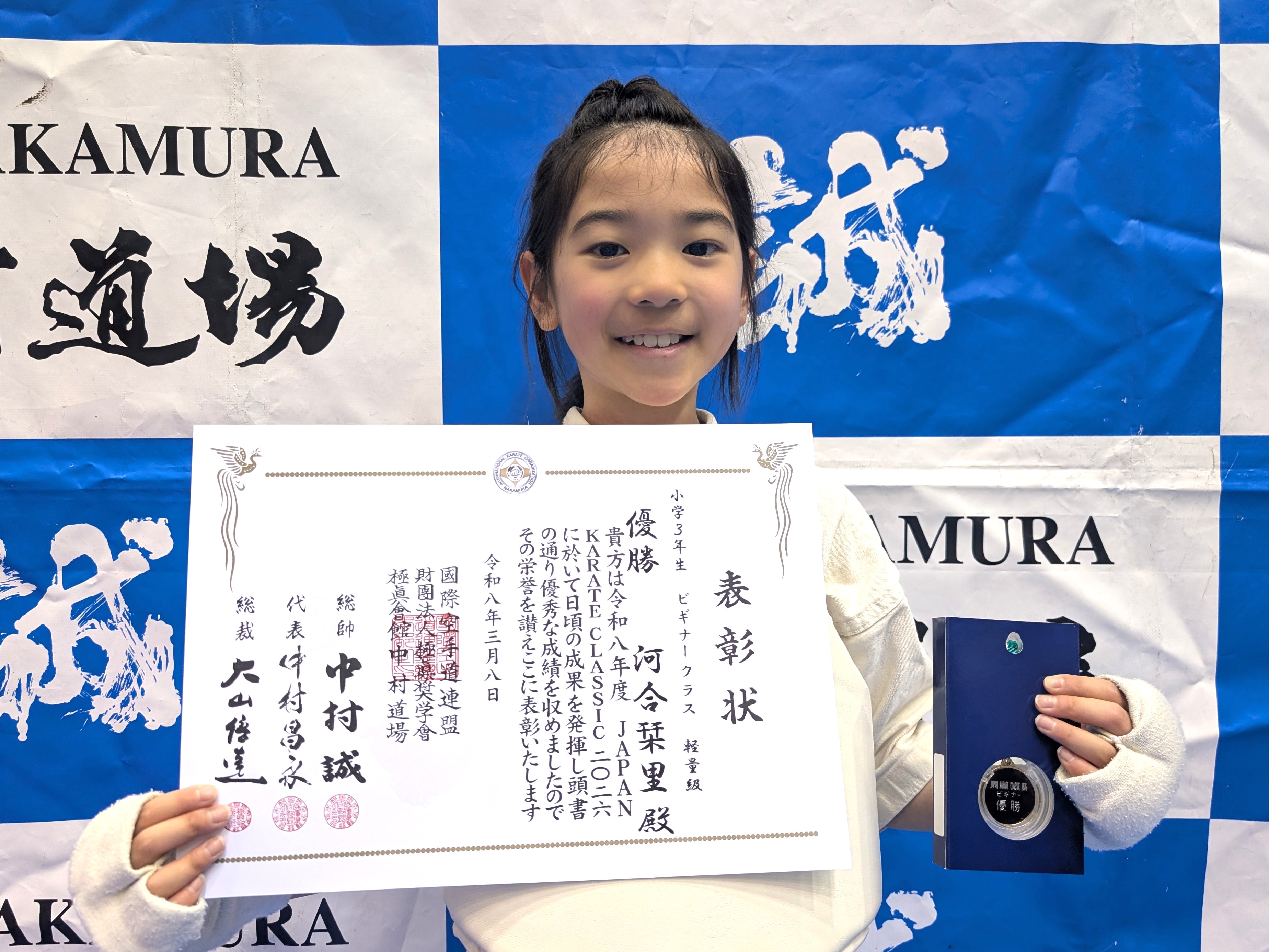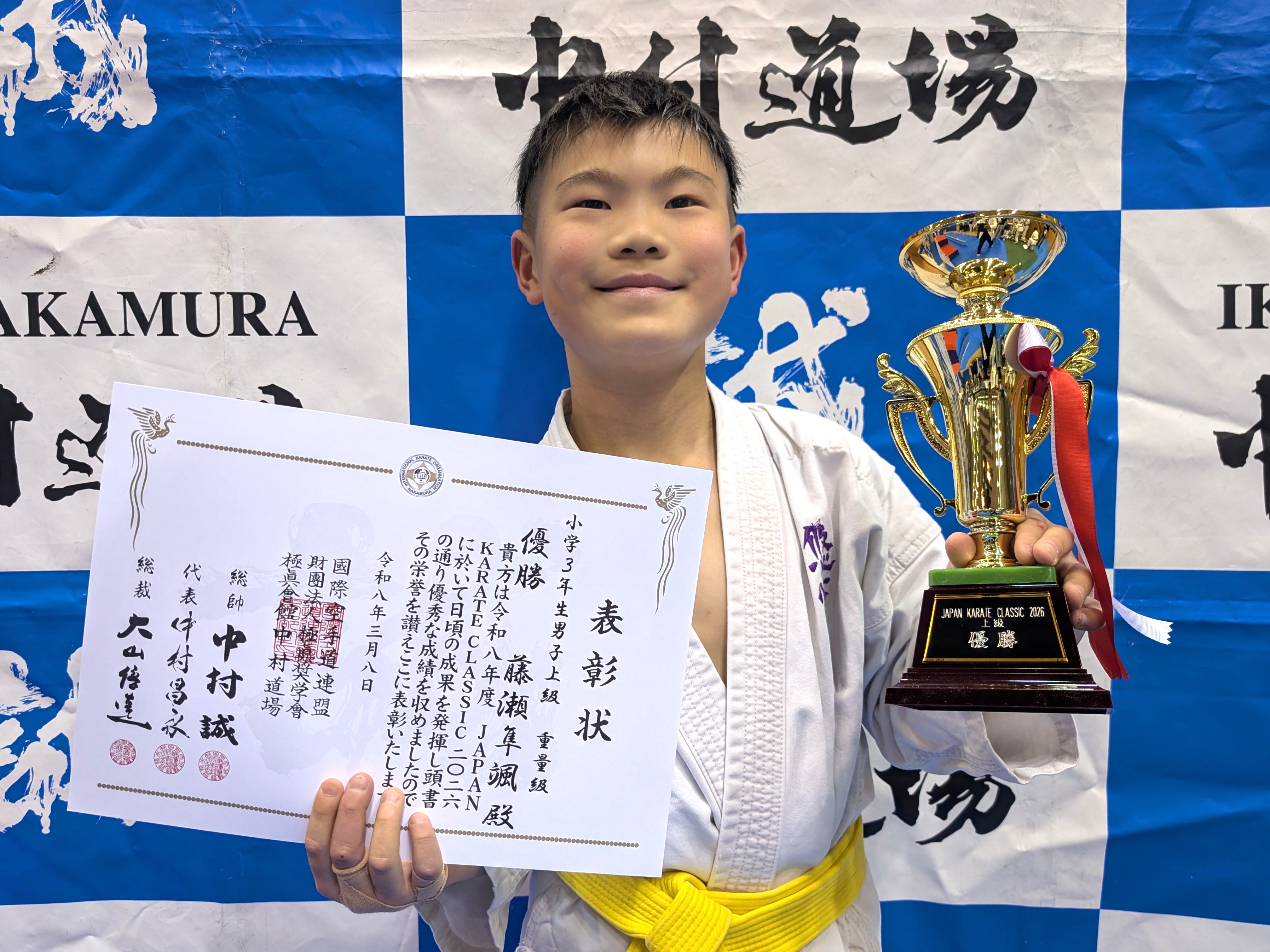 小学3年生(ビギナークラス)軽量級 優勝 河合栞里(大阪淀川支部) 小学3年生(ビギナークラス)重量級 優勝 三好貫太(大阪南海支部) 小学3年生(初級)軽量級 優勝 吉村莉玖(総本部道場) 小学3年生(初級)重量級 優勝 田中諒太(尼崎支部) 小学3年生(中級)軽量級 優勝 中村奏汰(加古川道場) 小学3年生(中級)重量級 優勝 金原はな(悠心会館) 小学3年生男子(上級)軽量級 優勝 松岡 湊(白蓮会館東大阪北支部) 小学3年生男子(上級)重量級 優勝 藤瀬隼颯(悠心会館)